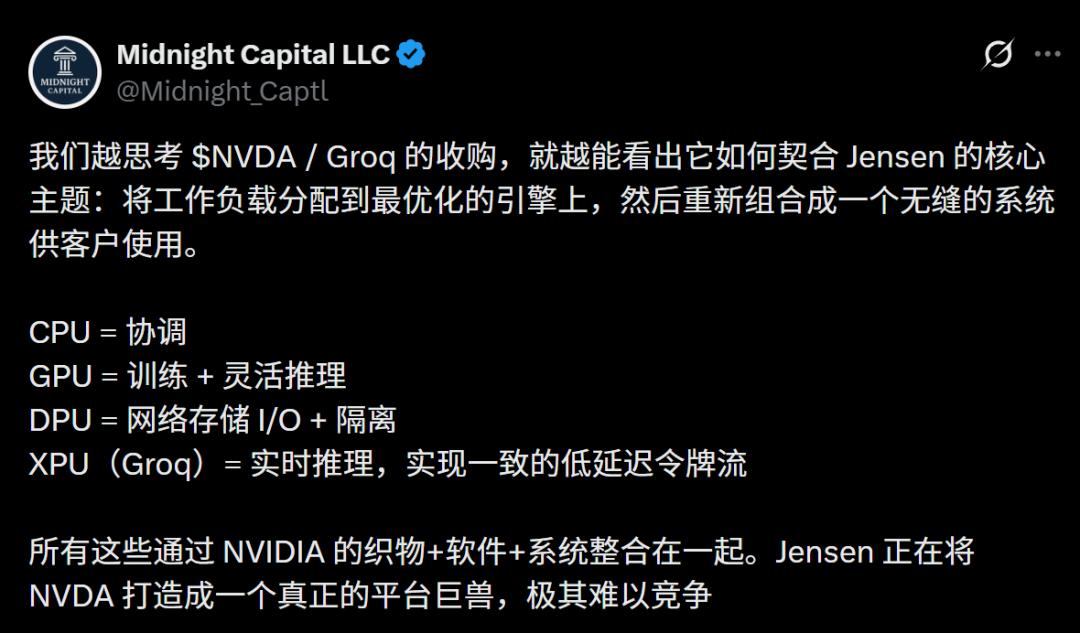 而就在这个言论曝出后没几天,英伟达收购Groq的新闻就曝出了。