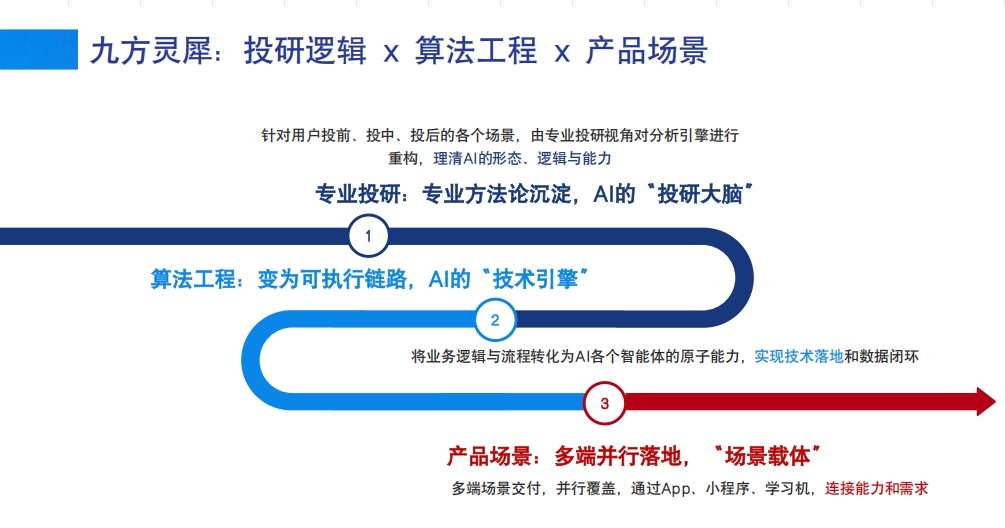 而基于对上述趋势的判断,智能投顾行业的下一步进化方向也已逐渐清晰。九方灵犀4.0负责人认为,AI诊股工具未来的迭代和想象空间在于认知深度与场景融合的双重提升。