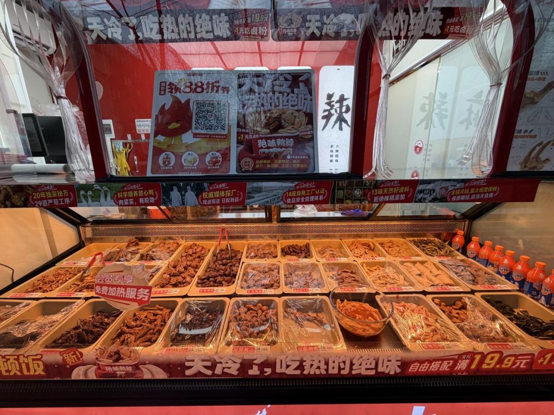 比如,久久丫部门门店从传统的冷卤模式升级为现场熬卤,使用火锅底料熬制卤汁,新增土豆肥肠粉、肉夹馍等主食,并推出手撕鸡套餐饭、猪头肉套餐饭等,将消费场景从单纯的购买带走延伸至店内堂食体验;周黑鸭将热卤与主食搭配,推出“3斤拌小锅鲜卤”,并与头部调味企业合作推出卤料包、鸭肉酱,将产品从即食零食领域拓展至家庭烹饪场景。