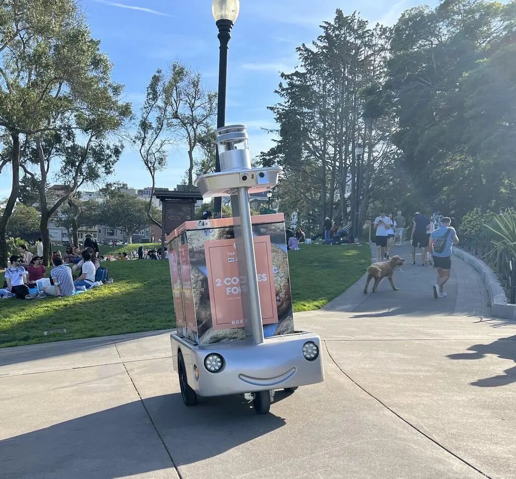 旧金山街头,孩子直接骑到了外卖机器人身上,而机器人只能继续按程序移动,完全不知道自己已经成了人类的玩具。