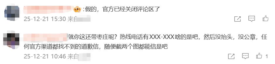 事实上,@枣庄在线 的微博评论区内已经有网友指出该道歉声明疑似伪造。