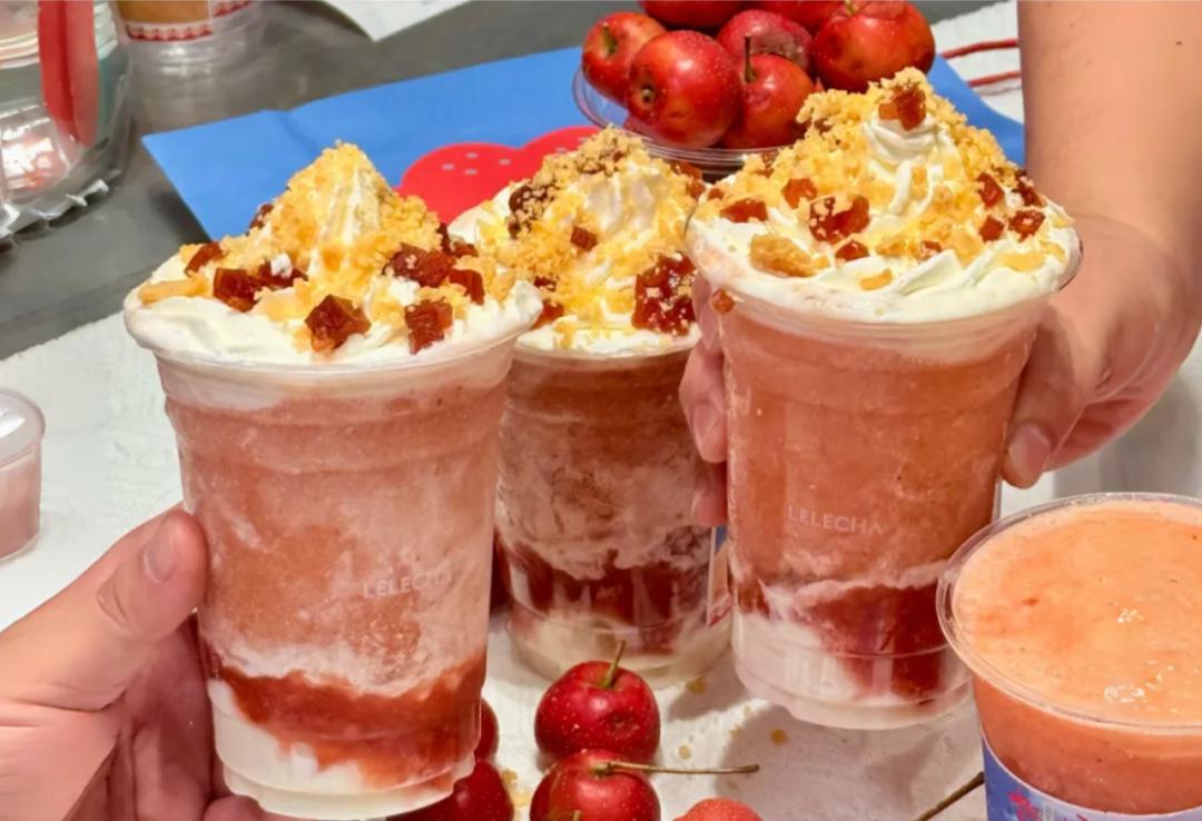 乐乐茶则借鉴街头小吃“苹果糖”的造型推出“凤梨苹果糖”饮品,把糖衣包裹的苹果置于杯顶,高颜值迅速引发消费打卡。即便经历“出品不标准下架调整”,恢复后热度依旧。
