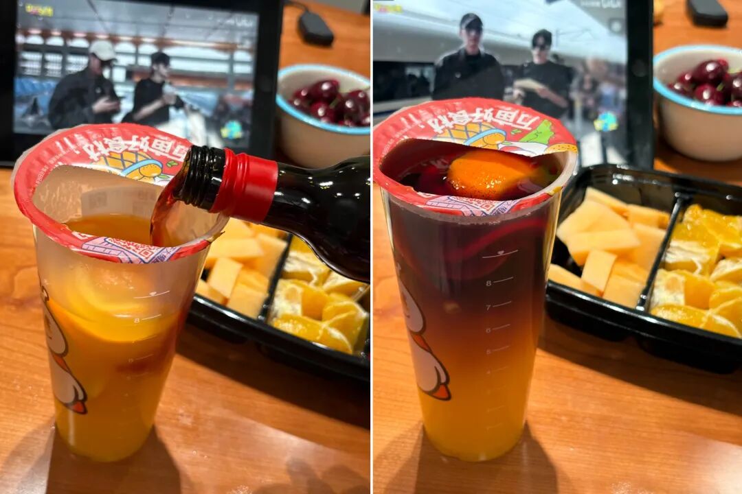 有网友提出更简化的“邪修”方案:直接买一杯蜜雪冰城的热饮棒打鲜橙,倒入红酒即可。此法无需开火、不用洗锅,却能高度还原热红酒的风味与暖意。