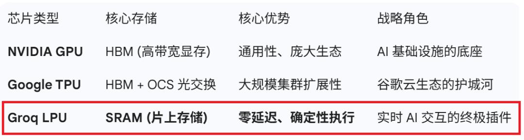 值得注意的是,Groq主攻的也并非谷歌TPU同款架构,而是独创的LPU——软件定义硬件的可重构数据流架构,消除了内存带宽的瓶颈。这种设计让LPU在处理大语言模型时,能实现每秒数百个Token的“瞬时”吐字,这是TPU和传统GPU无法企及的物理极限。这一技术也被业界及媒体誉为“高阶TPU”。甚至一些业内人士表示,对于推理环节而言,Groq的可重构数据流可能是最好的技术路径选择,没有之一。