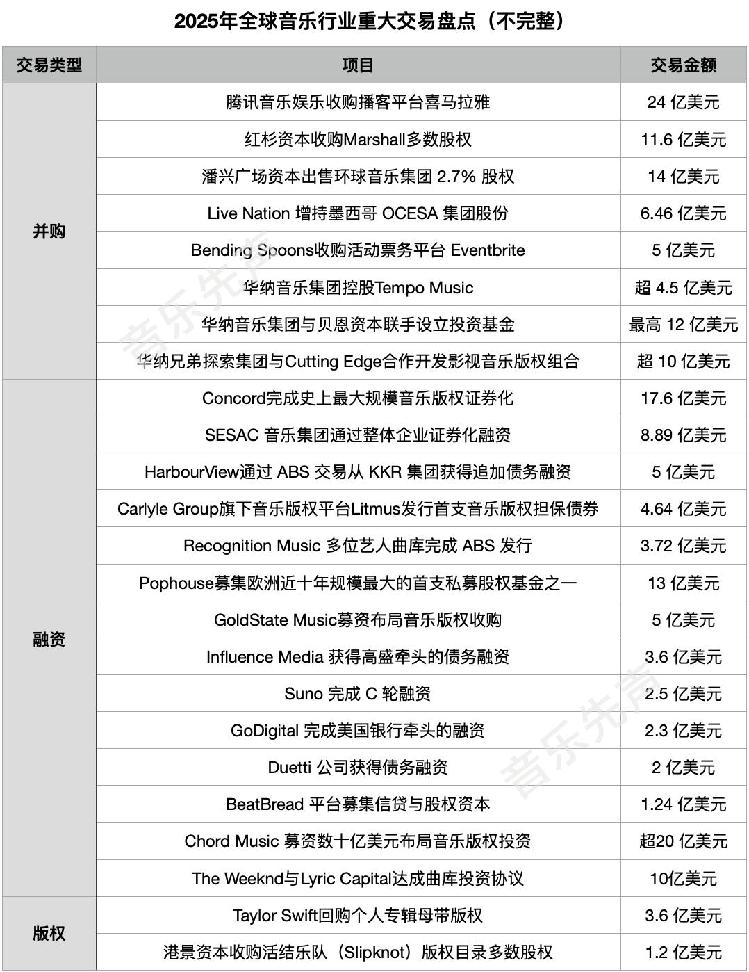 2025 年音乐资本版图:融资、并购、版权