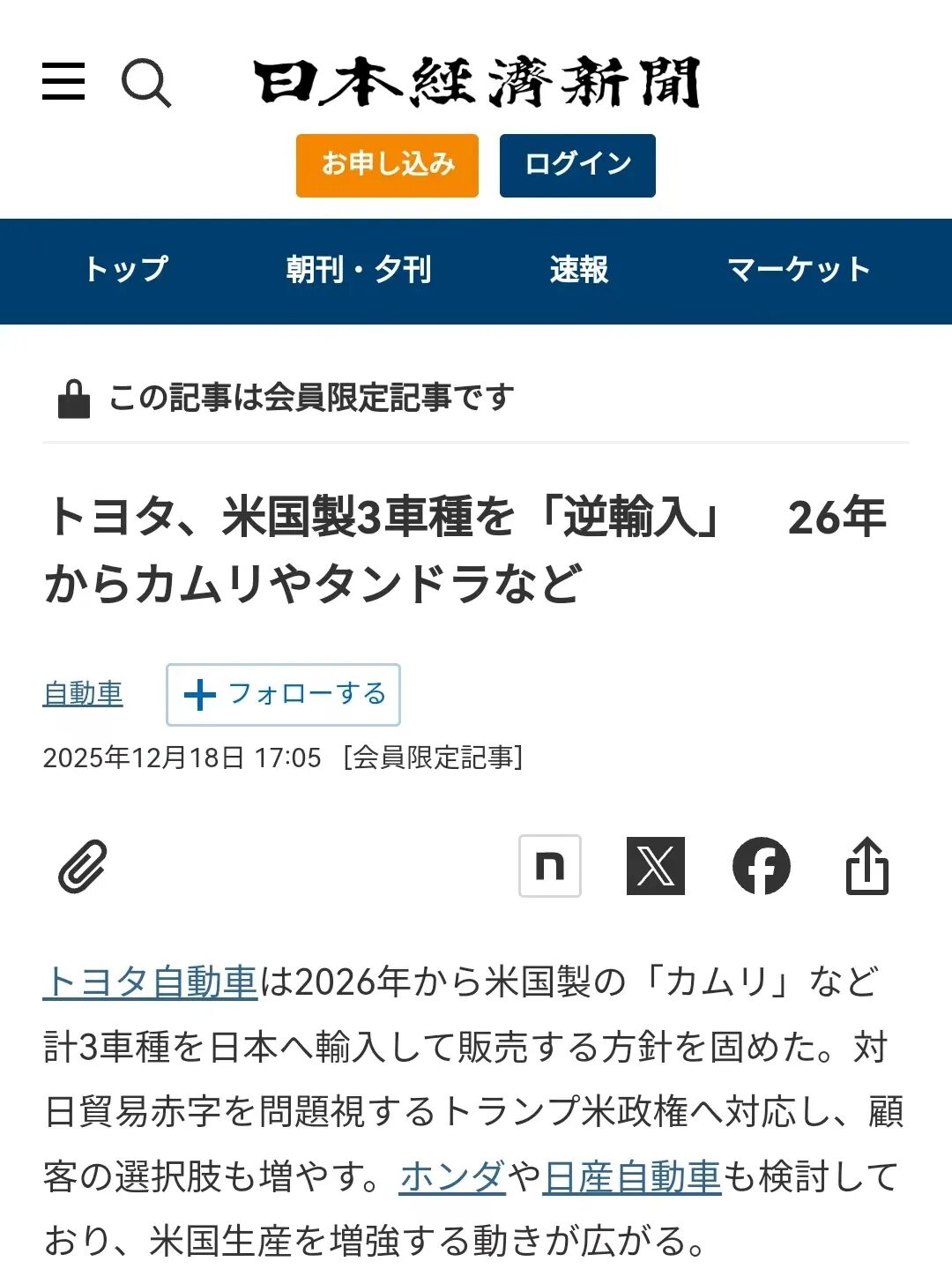 由此可见,“逆向进口”的安排,实质上可视为丰田汽车对特朗普政府长期批评日美贸易失衡的回应——在此之前,白宫多次指责日本市场准入壁垒高,导致美国汽车难以打开销路。此番举措,显然意在缓和双边贸易摩擦。
