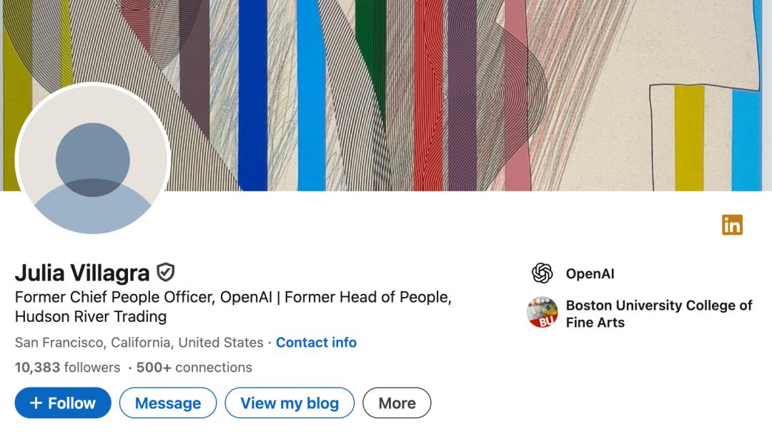 Julia Villagra,OpenAI的首席人事官(CPO),在2025年8月辞职,距离她被提拔至C-suite仅过去了五个月。