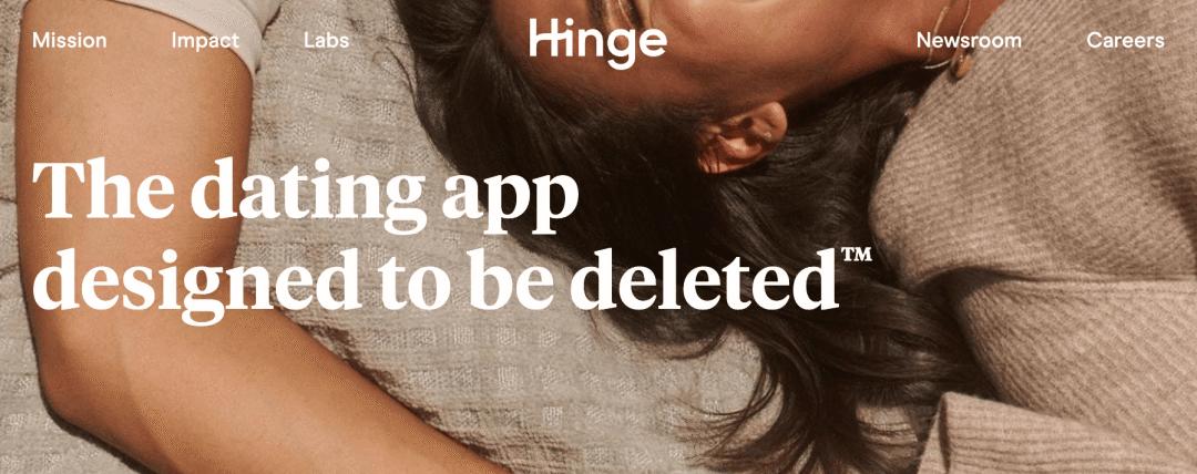 经典案例就是约会软件 Hinge 的核心标语:Designed to be deleted.(该公司甚至为这句话注册了商标。)
