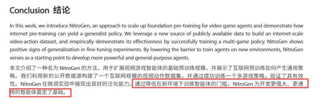 而且论文也说,NitroGen 只训练了它的下意识反应,也就是我们常说的肌肉记忆。