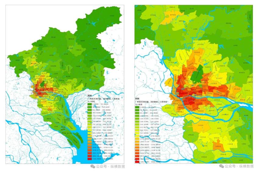 广州人口高度集中在主城区。七普数据显示,全市170多个街道乡镇中,广州主城区和远郊区的人口密度最多可相差千倍。荔湾、番禺、黄埔三区人口分布依次从集聚到分散: