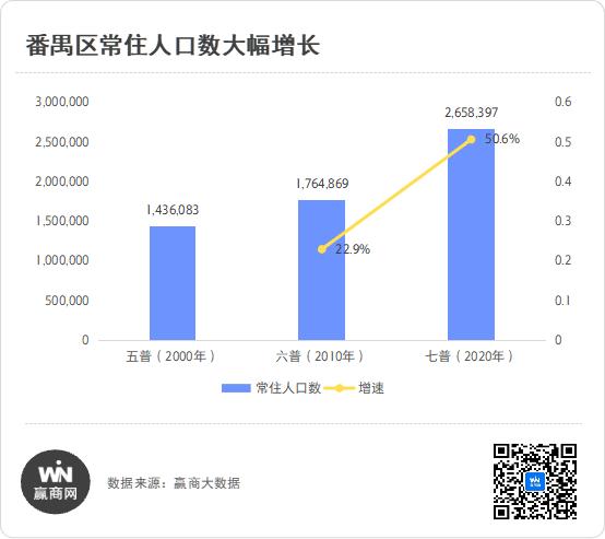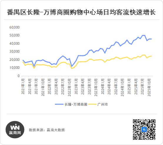 事实证明,番禺的开发策略是成功的。2010-2020十年间,番禺的人口增长高达50.6%,购物中心客流,尤其是核心商圈客流水涨船高。