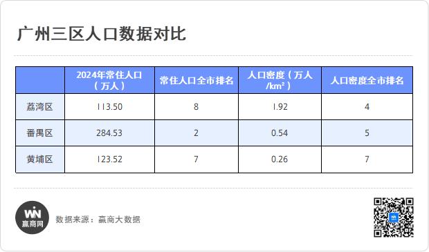 人口分布:荔湾最密,黄埔常住人口与前者持平但密度最低