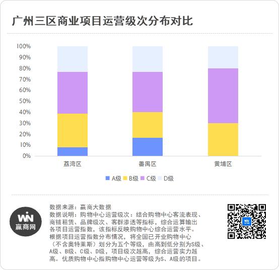 荔湾区商业底蕴深厚,对头部运营商吸引力最强,但在项目级次方面不及番禺区;