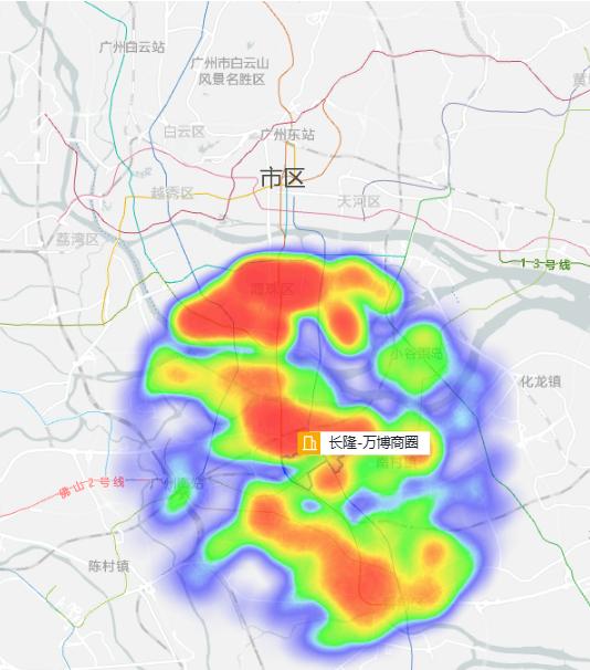 长隆-万博商圈,一方面依托长隆度假区吸引大批旅游客群,另一方面覆盖广州地铁3号线、7号线、18号线三条地铁线路,横跨汉溪长隆、南村万博两大地铁枢纽站点,大幅提升商圈辐射范围。