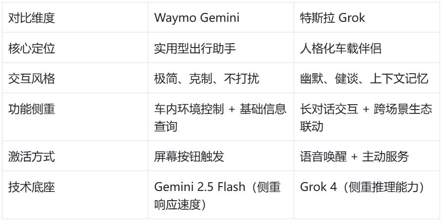 Waymo Gemini vs 特斯拉 Grok