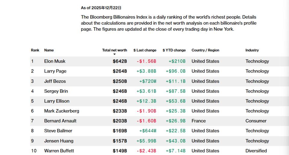 2025年12月,《福布斯》杂志发布了一组数据:这一年,全球十大富豪的财富总共增长了7000多亿美元。而其中最令人瞠目的是,仅埃隆·马斯克一人的身价就暴涨了3300多亿。这个数字比排名第二的拉里·佩奇的全部身家还要多出700亿美元。