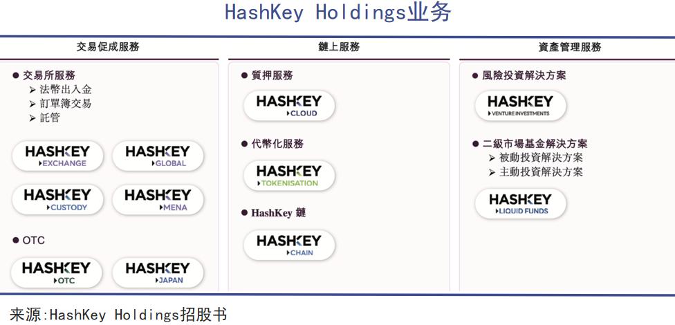 根据招股书,上市的HashKey Holdings业务包括交易促成、链上服务和资管服务,覆盖数字资产全价值链。