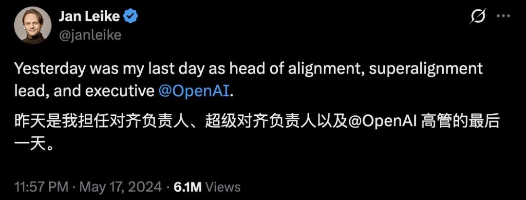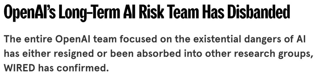 2024年5月,OpenAI「超级对齐」团队解散,该团队工作将被并入/吸收进其他研究工作。