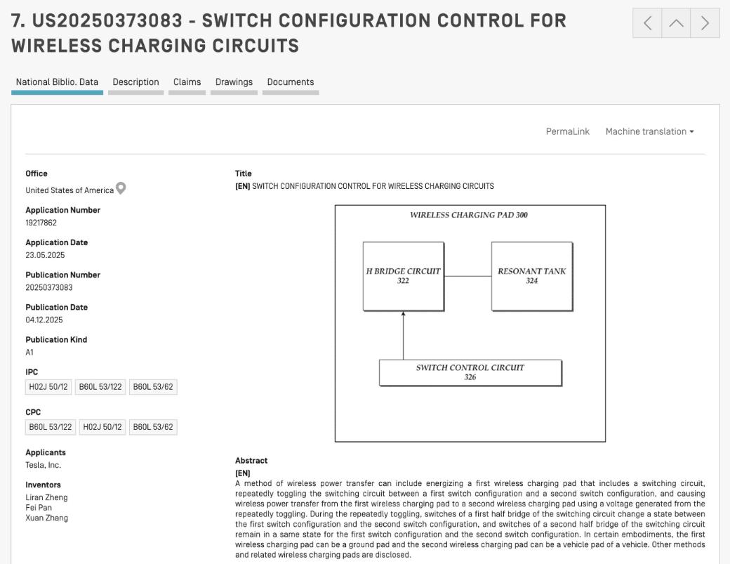 特斯拉的无线充电专利(US20250373083 A1),这个月月初刚发布,原本是在2024年5月获得的授权。