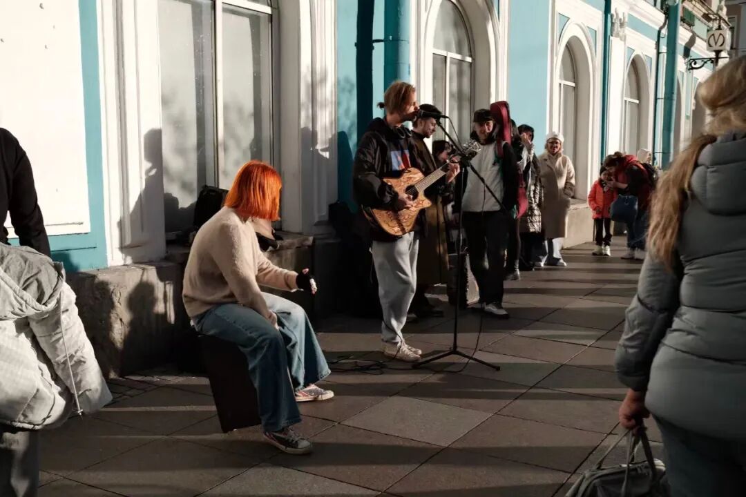 △俄罗斯街头,年轻人在卖唱。(图/晓洋 摄)