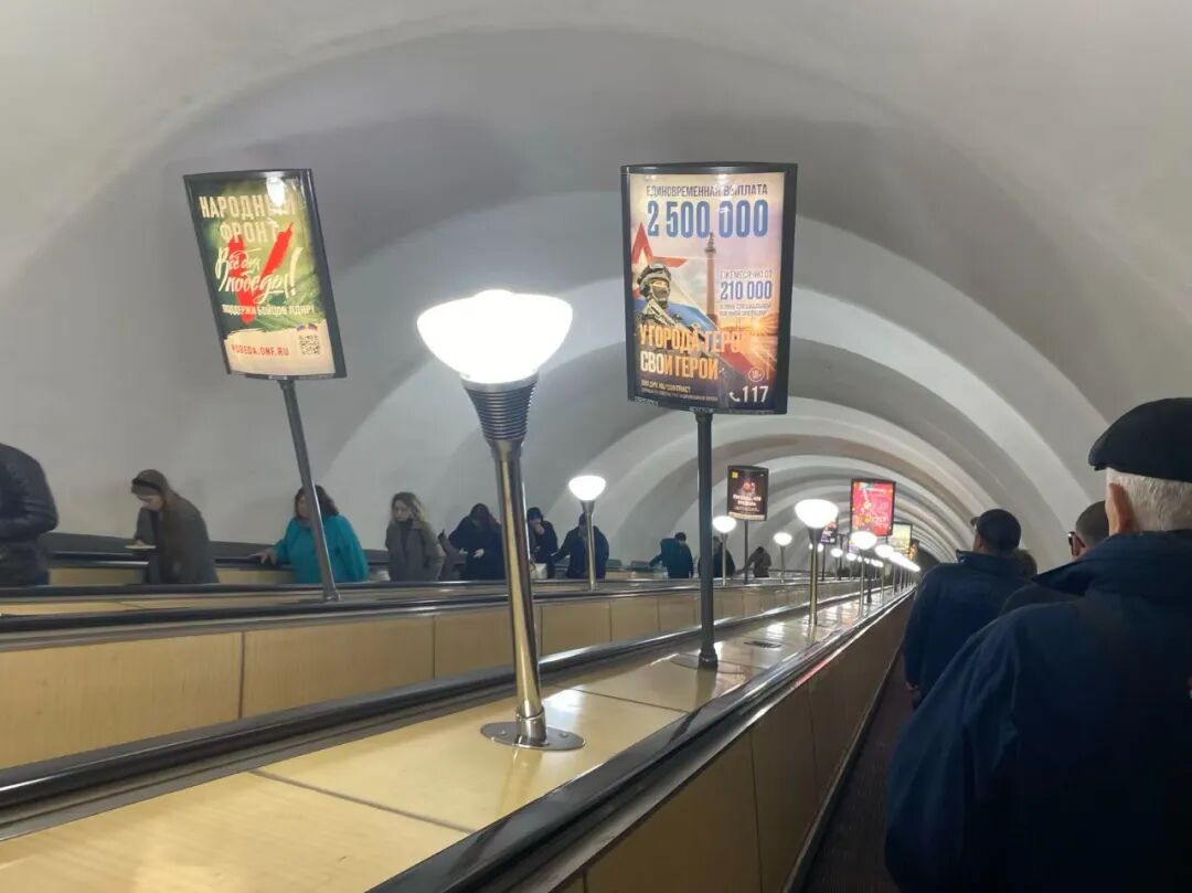 △莫斯科地铁站扶梯旁的征兵广告。(图/晓洋 摄)