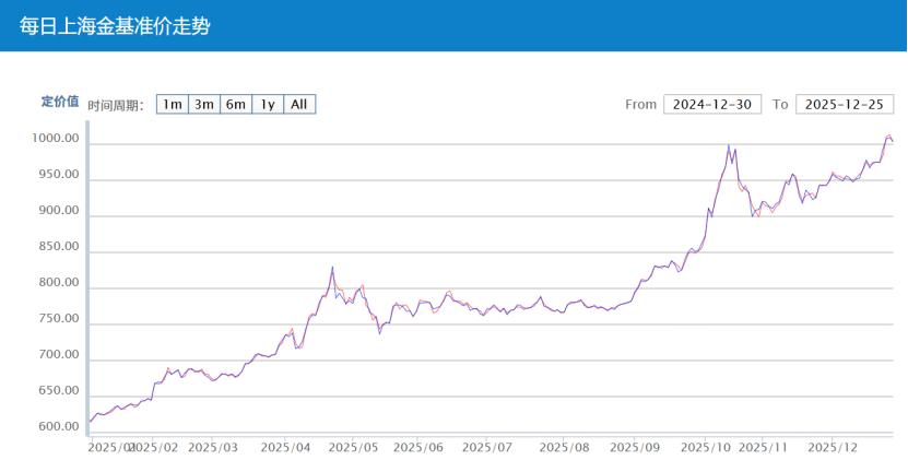 这个讨论的背后,是黄金几乎无休无止的涨价。2025年以来,黄金的价格一路飙升,在年底前突破4500美元/盎司(约3.16万人民币),创下历史新高,年内涨幅超过70%。相应地,国内首饰金价也水涨船高至1400元/克。