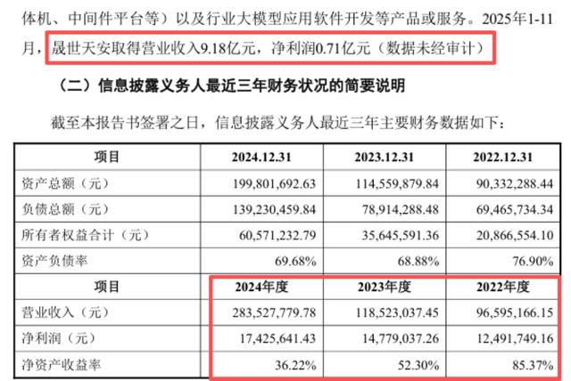 而在晟世天安的业务描述中,“集成”成为关键词,其主要通过自建生产线向客户提供算力基础设施、大模型软硬一体机及行业应用软件开发。公告披露的数据显示,尽管晟世天安2025年1-11月营收达9.18亿元,但净利润仅为7100万元,利润率相对较低,且在此之前营收规模持续偏小。
