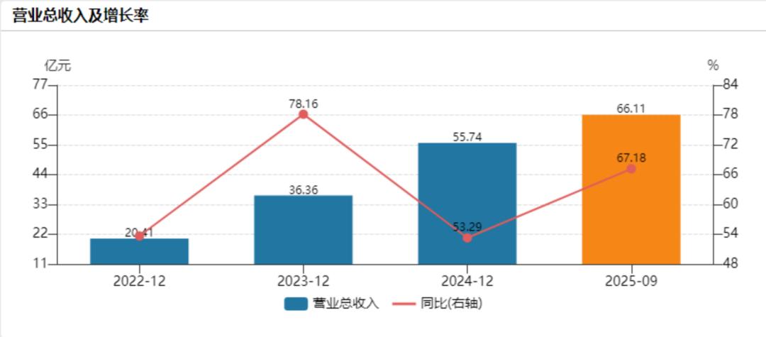 财报数据显示,2025年前三季度,影石实现营收66.11亿元,同比增长67.18%。近年来影石营收增长持续强劲,根据Wind数据,2022年至2024年,影石营收从20.41亿元攀升至55.74亿元。