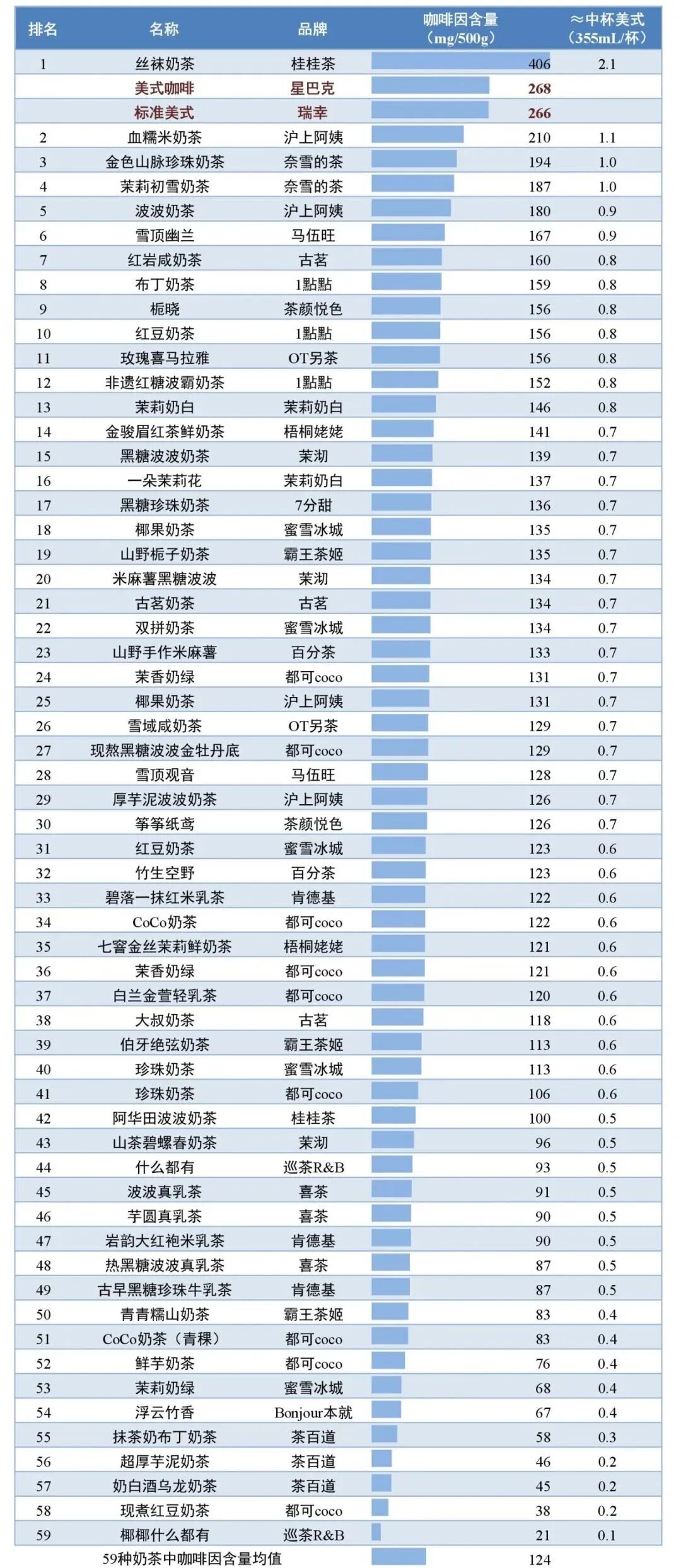 所以,有个比较上当的点:奶茶里的咖啡因含量,有可能比咖啡还高。