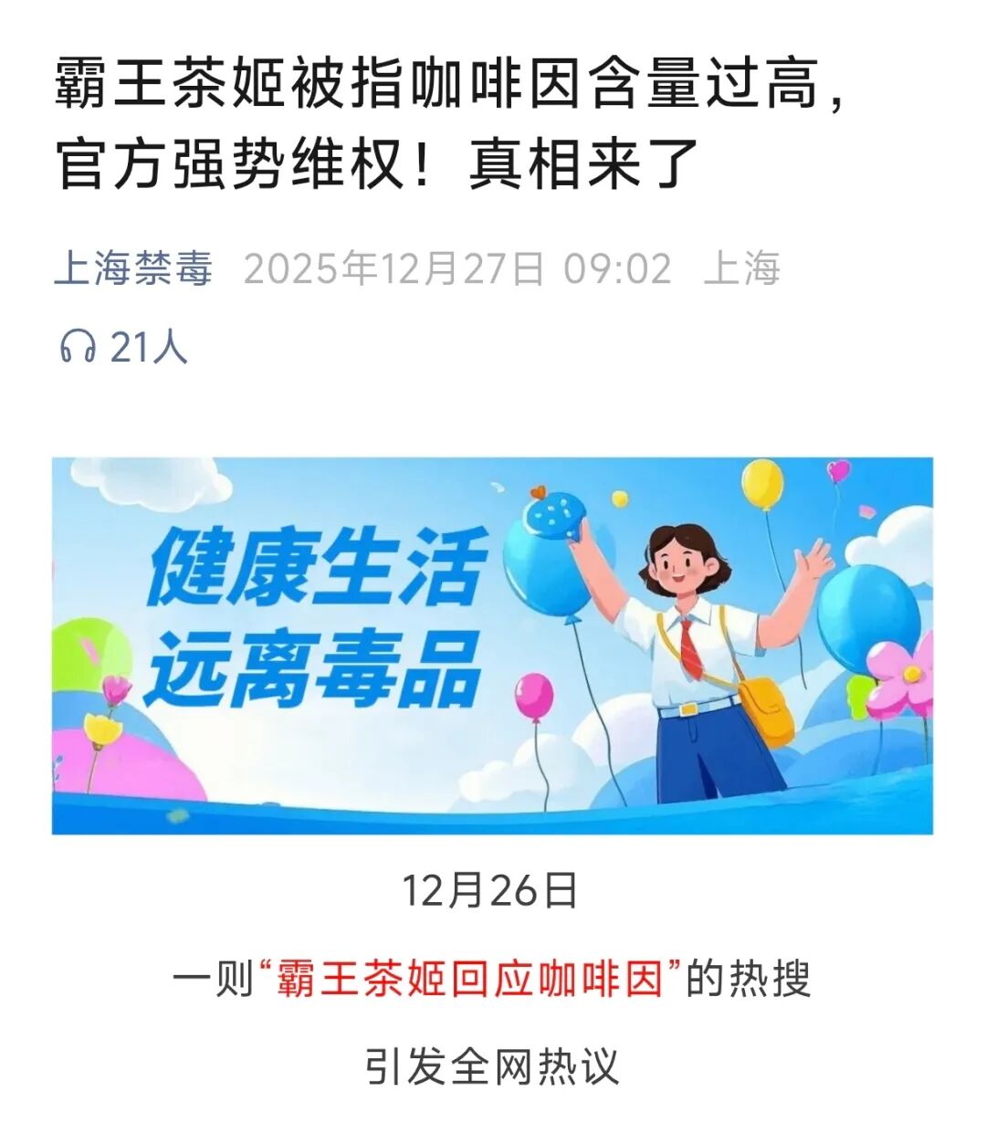 我怀疑哦,“毒品”是敏感词不能建词条,建了也受限制。所以,最后冲上热搜的相关词条是“霸王茶姬咖啡因”。