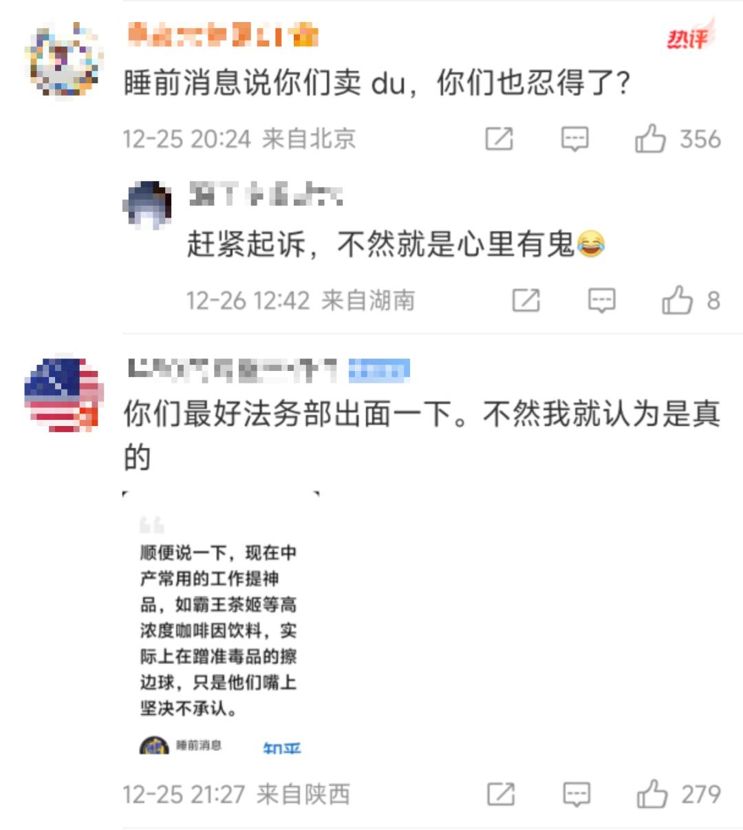 这个说法12月25日被陆续搬回微博,12月26日一早加速发酵,霸王茶姬也和“软毒品”,“准毒品”等词关联。