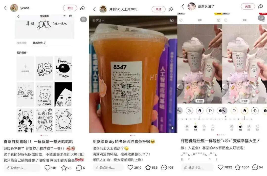 喜茶虽然从联名中撤退,却没有舍弃社交营销。剁椒曾在【“定制喜帖成硬通货,喜茶这波低成本狂欢怎么就火了?"】中分析过,喜茶的定制喜帖提供的是和IP联名相通的情绪价值,但成本更低,回报更高。