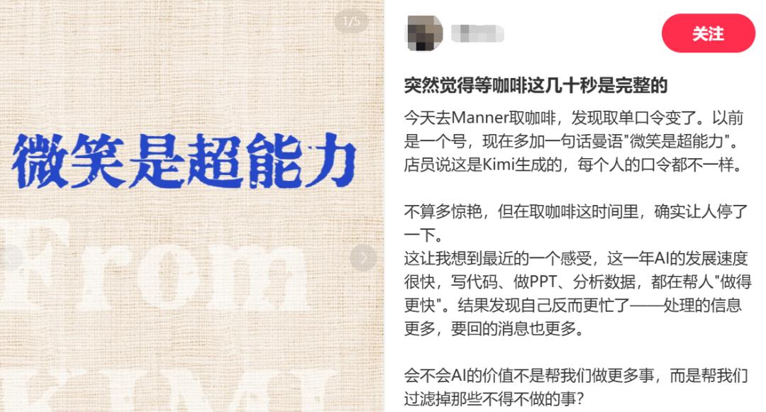 跨品牌联名则高度考验品牌的调性和玩花样的能力。今年,Manner咖啡的联名数量从3次悄然涨回12次,其中7场为跨品牌联名,跨越运动、美妆、餐饮、服饰等多个大类,调性虽然稳定,但却没有都没有掀起出圈风浪。Manner甚至挑战了与AI Kimi的跨界联动,设计了专属UI界面和由Kimi生成的“AI咖啡诗”口令。