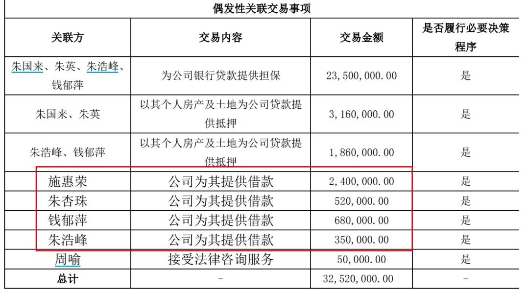 早期,固德电材曾为朱国来父亲施惠荣、母亲朱杏珠,朱浩峰、钱郁萍夫妇提供借款,金额在35万元至240万元之间不等。