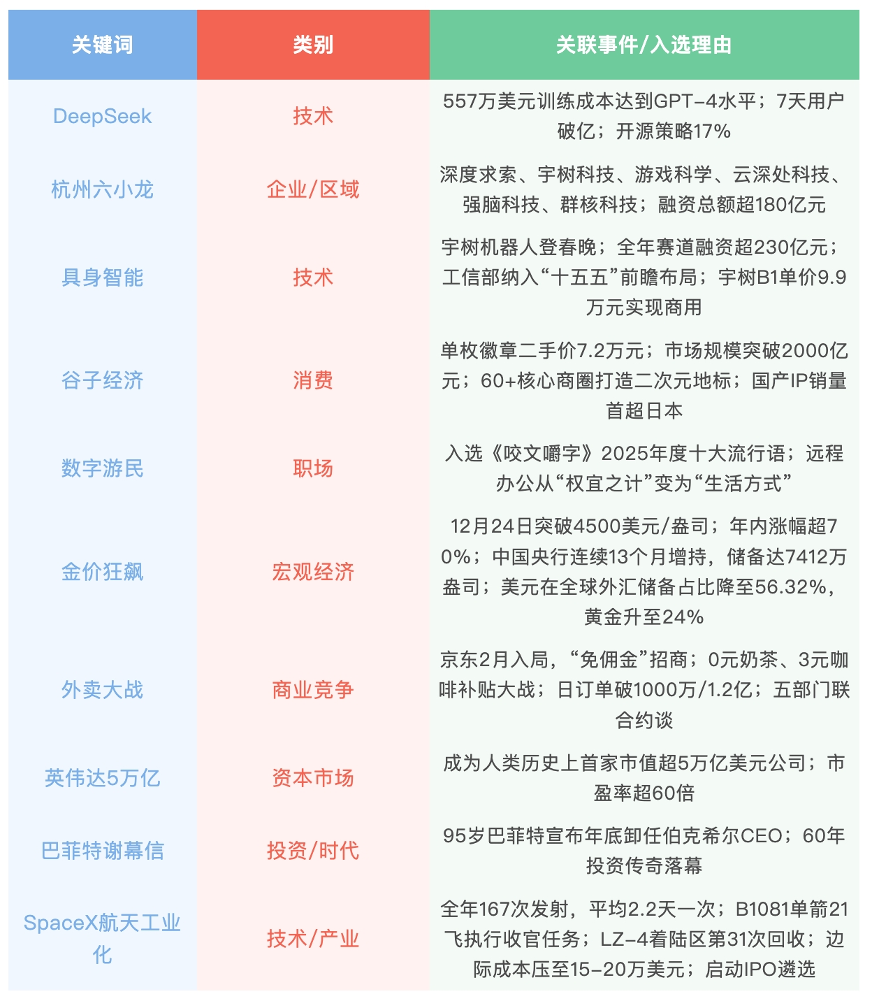 它们共同勾勒出2025年的商业图景:技术在加速,资本在重估,消费在分化,竞争在升维,工作在重构,一个时代在谢幕。