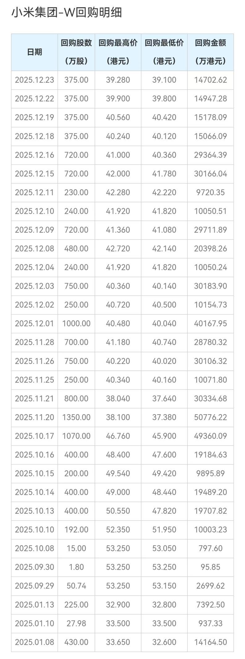 2025年以来,腾讯回购了近750亿港元;而小米呢?仅回购了58亿港元,不足腾讯的8%。