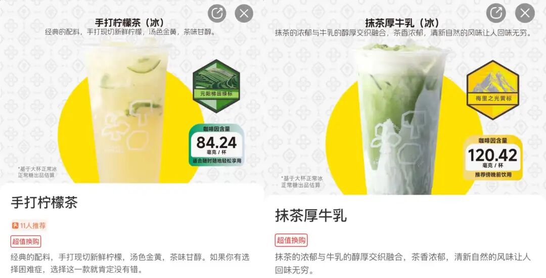 茶饮中含有咖啡因其实不算什么新鲜事,不少品牌甚至会主动公开自家产品的咖啡因含量,大方与消费者谈论这个话题。