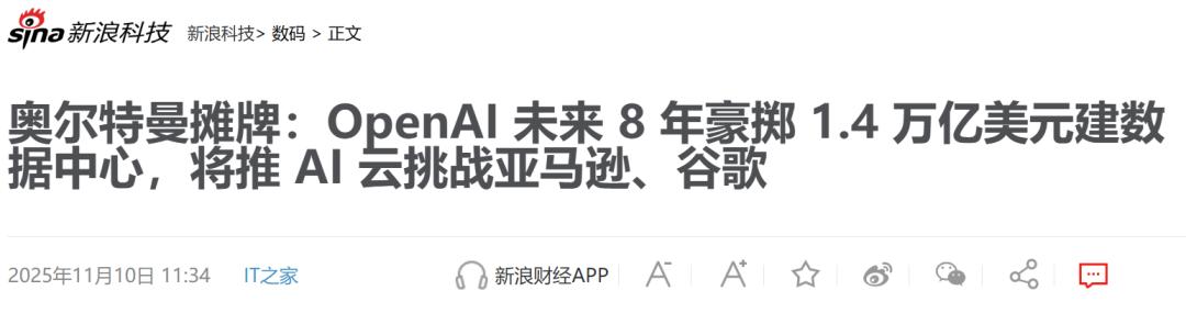 先来看需求端:OpenAI公开表示,未来几年在计算力上的投入可能高达$1.4万亿美元。