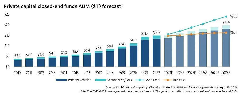 Preqin和PitchBook的数据显示,全球私募/另类投资规模近年来快速增长,已经接近甚至可能超过$20万亿美元
