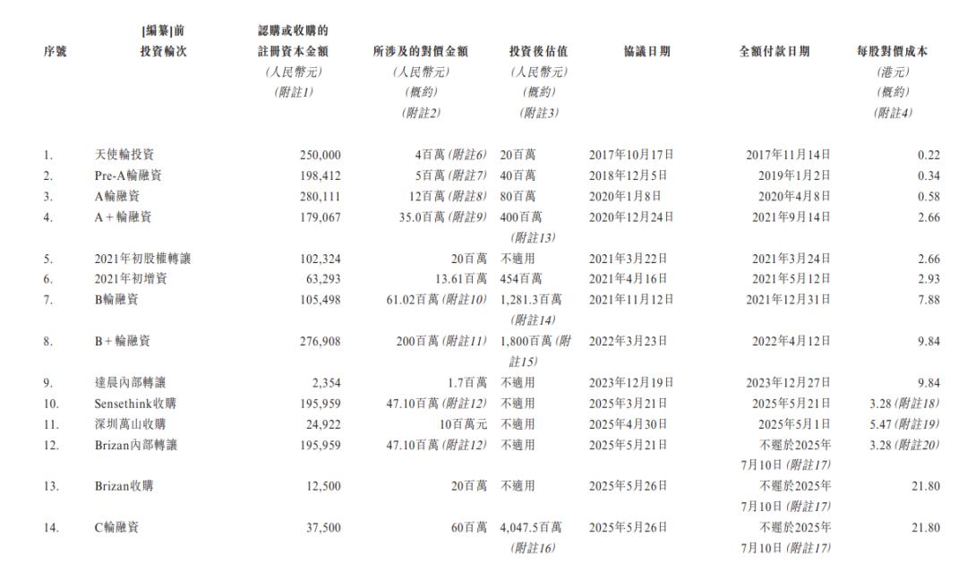 此外,在2025年5月底,即卧安机器人递表前夕,高秉强名下的Brizan Ventures以7000万元进行增持。经过数轮融资,卧安机器人估值水涨船高,从天使轮时的2000万元,增长到C轮融资后的40.48亿元。