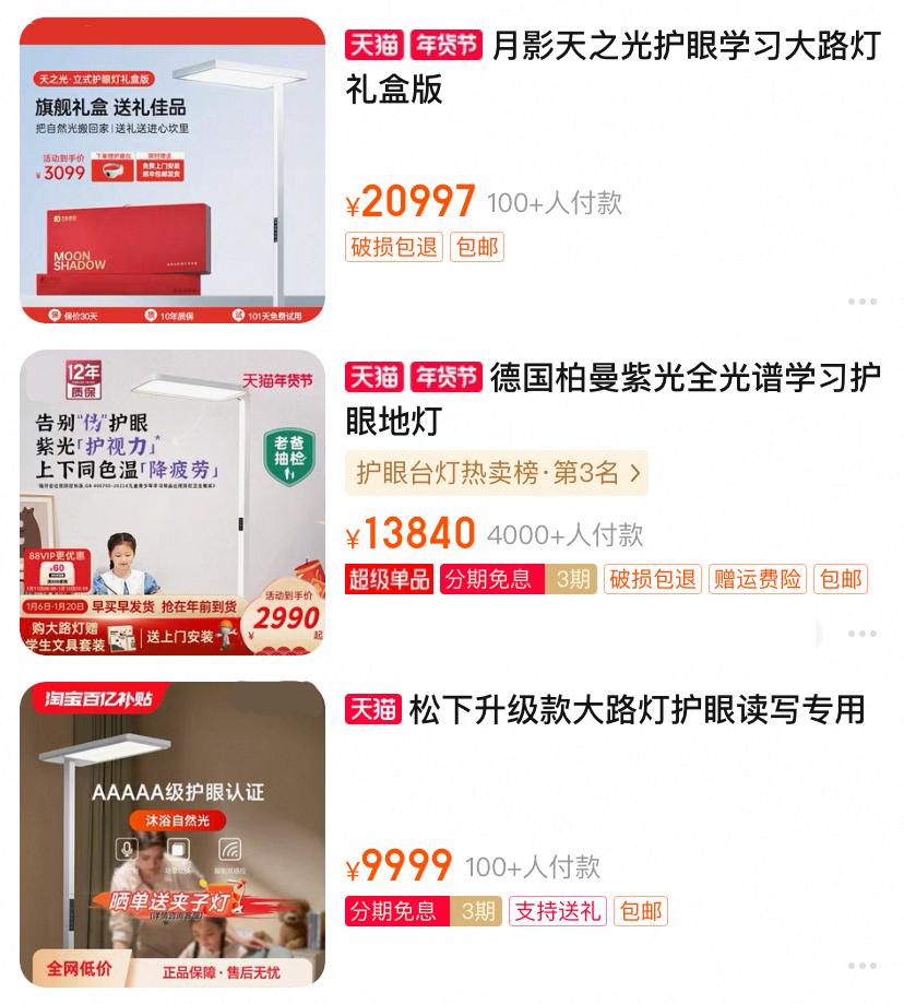 这才弄明白,“大路灯”并非街头路灯,而是一种高端立式护眼台灯,近年来在有娃家庭中十分流行,被称为“中产家庭的育儿标配”。