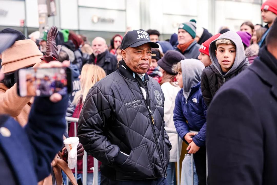 埃里克·亚当斯最后一次作为纽约市长参梅西感恩节大游行(Macy's Thanksgiving Day Parade)。他在连任竞选中败给了民主社会主义者祖赫兰·马姆达尼(Zohran Mamdani)。图片来源:PHOTO BY MANOLI FIGETAKIS/GETTY IMAGES