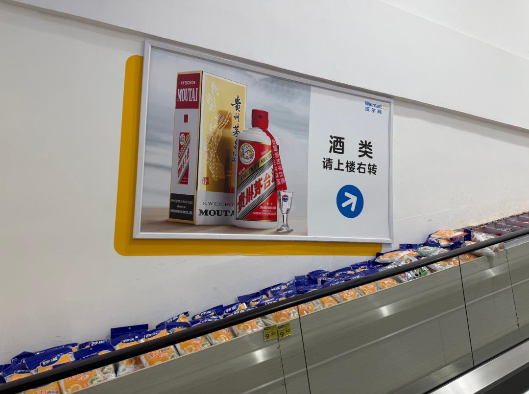 白酒广告依然占据超市的显眼位置,时代财经摄
