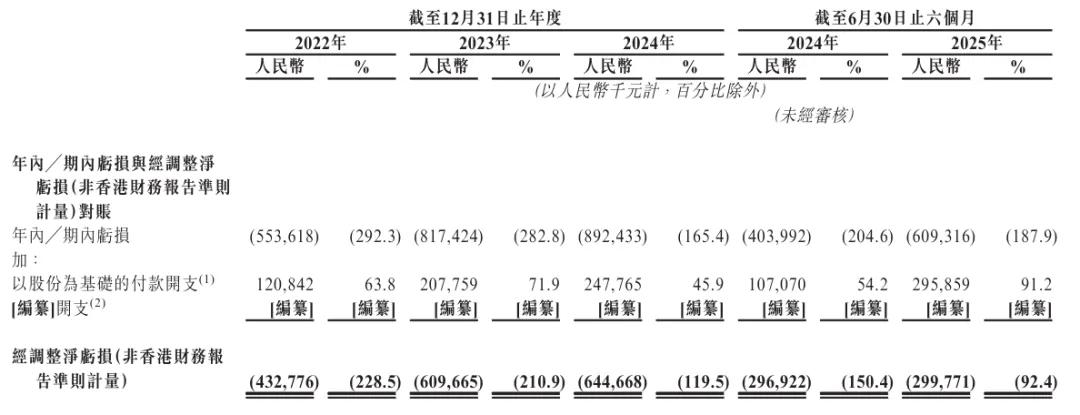 天数智芯2022年、2023年、2024年经调整净亏损分别为4.33亿、6.09亿、6.45亿;2025年上半年经调整净亏损为3亿元。