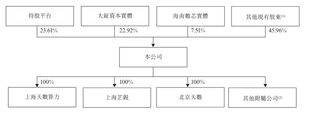 IPO前,持股平台持股为23.61%,大钲资本实体持股为22.92%,海南数芯实体持股为7.51%。