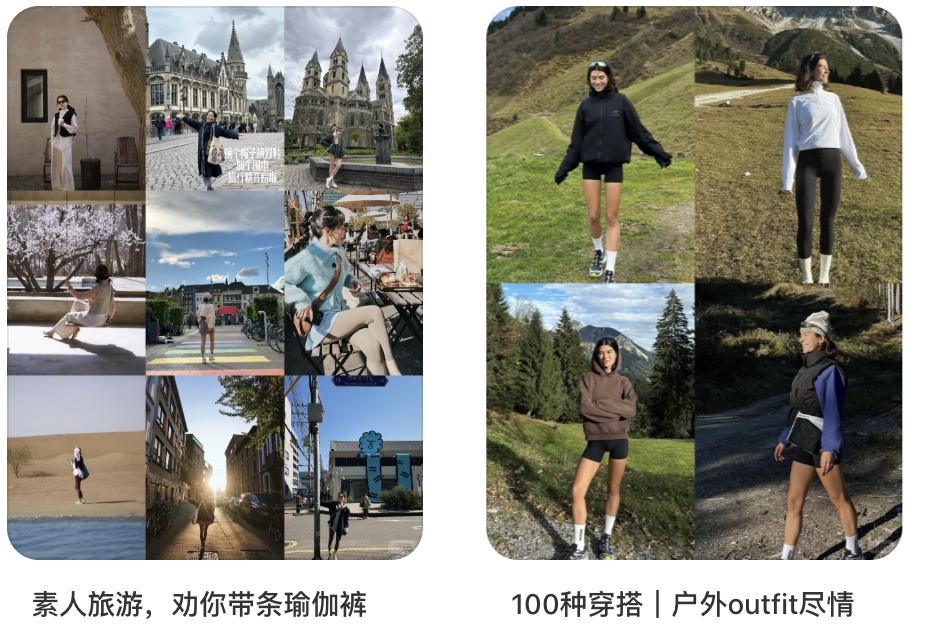 lululemon、Nike、adidas 等品牌,早已不只是在卖衣服,而是在反复输出一种动起来的生活图景。大量穿搭博主持续分享 Citywalk 运动风、旅行速干穿搭、「一周旅行只带一条运动裤」的内容,让运动服在视觉和叙事上都变得合理、甚至理所当然。