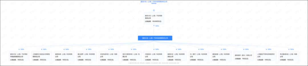 而随着星空计划在12月23日—25日期间里,密集成立新公司。据查,星空计划(上海)汽车科技有限责任公司在上述三天时间内,在上海市宝山区、浙江省嘉兴市成立11家新公司,所属行业为科学研究和技术服务业、批发和零售业等,持股比例均为100%。