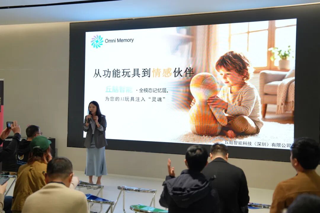 丘脑智能CEO张源以“长期记忆技术,赋予AI玩具情感温度”为主题,从行业痛点切入,深入浅出地分享了丘脑智能如何通过核心技术创新,打破AI玩具 “冰冷互动” 的困局,让智能陪伴从功能层面升级至情感层面,为行业发展开辟新赛道。