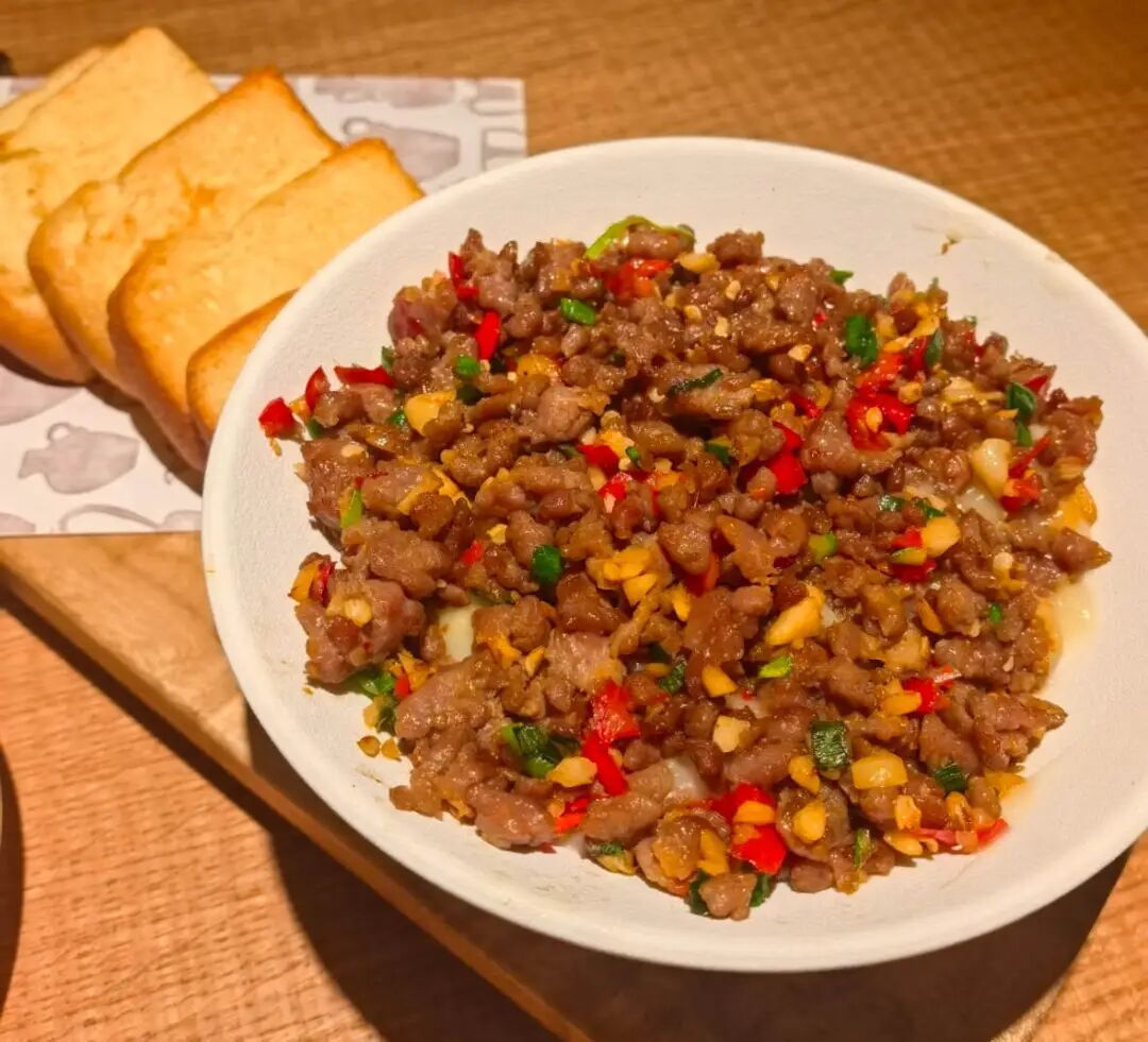 菜品上也是“中餐底色,西餐表达”,江西碎椒牛肉配上了吐司,擂椒皮蛋遇见了法拉饼……只有你想不到,没有你吃不到。