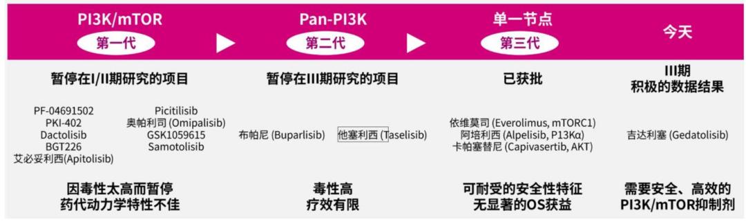 辉瑞的退出并不让人意外,因为过高的毒性使得PAM通路失败的管线比比皆是。为了降低毒性,不少公司选择单一靶点开发药物,虽然安全性有所提升,但却始终没有取得显著的OS获益。